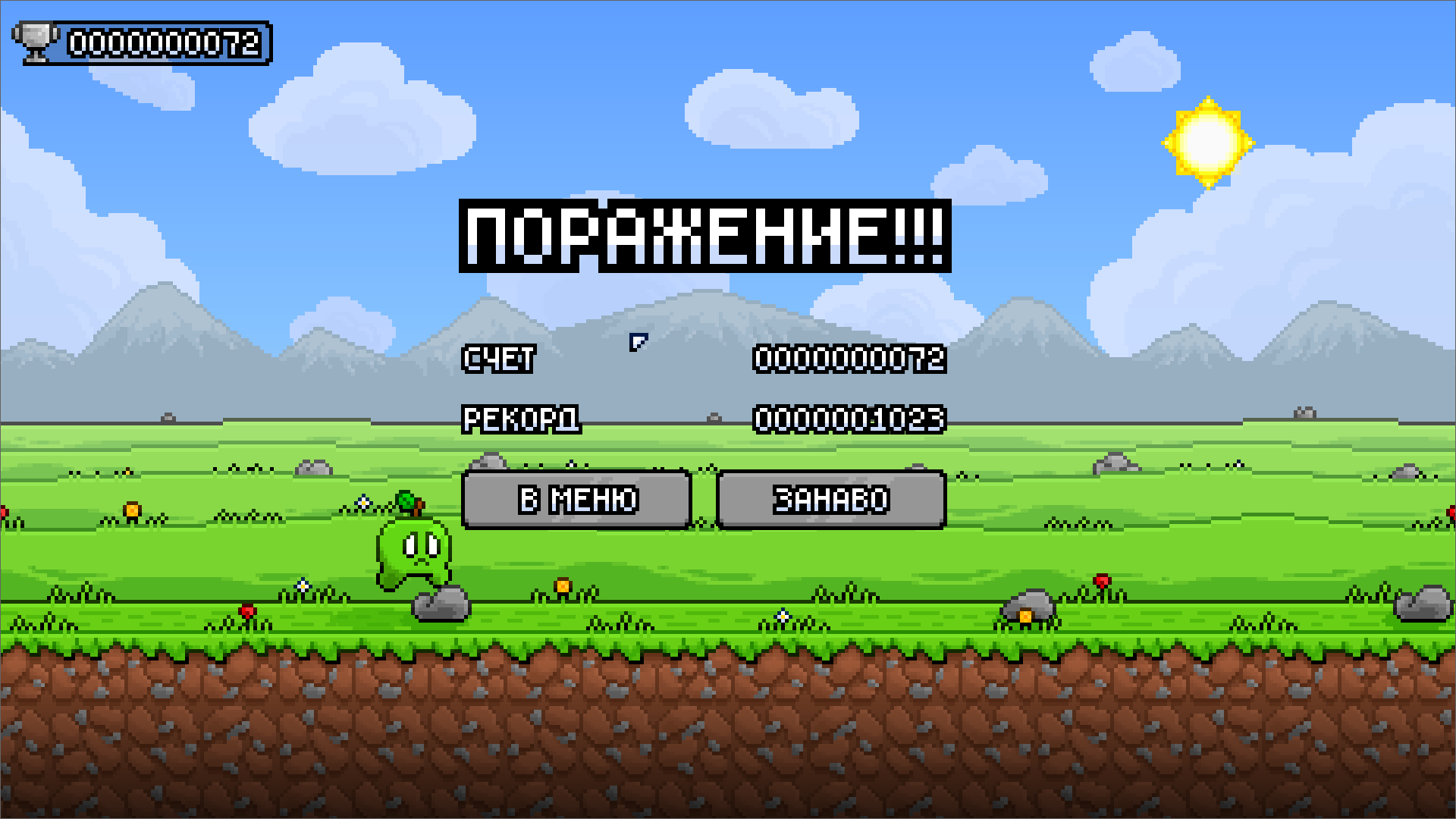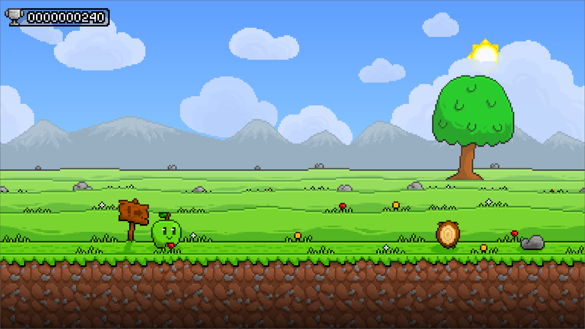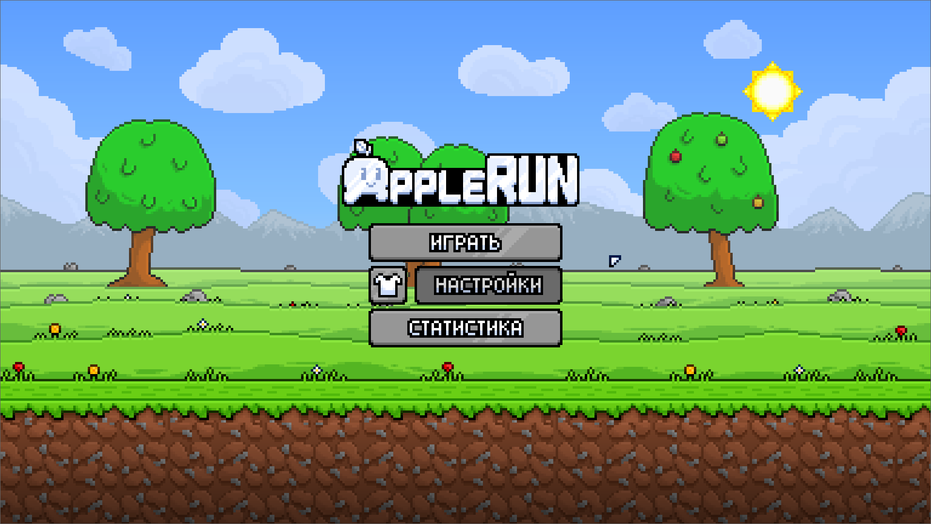 Apple RUN — простая игра-платформер, суть которой заключается в том, чтобы бегать и перепрыгивать через препятствия, а иногда и не перепрыгивать их.